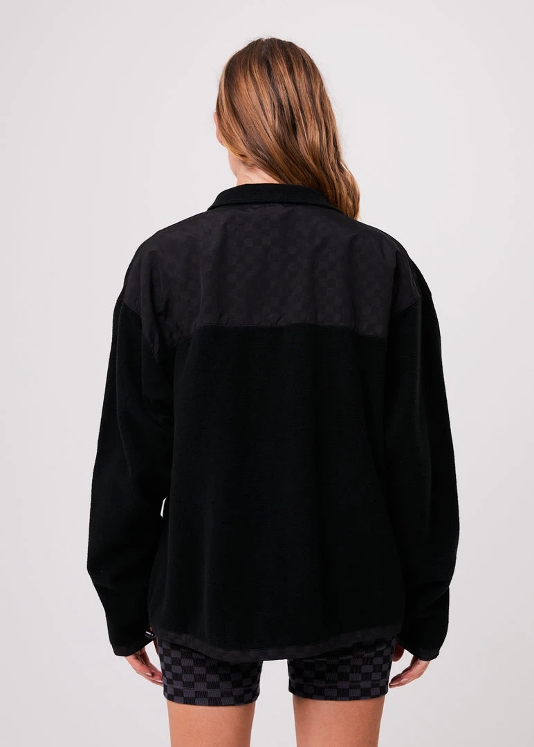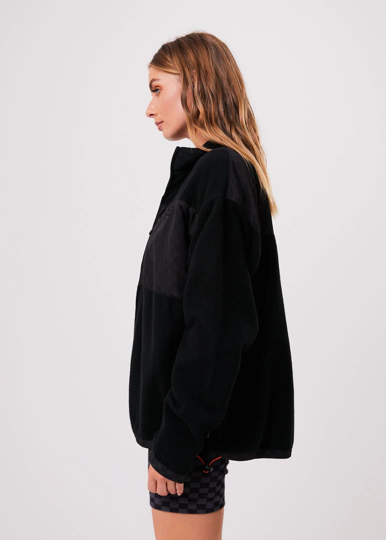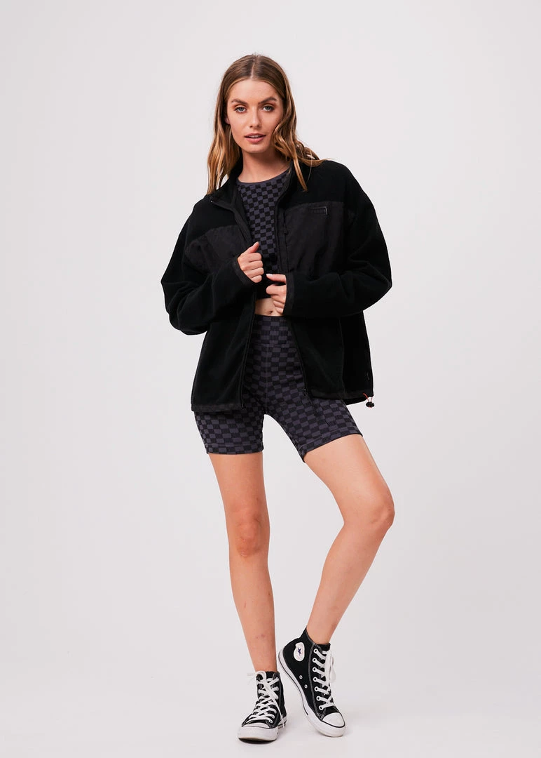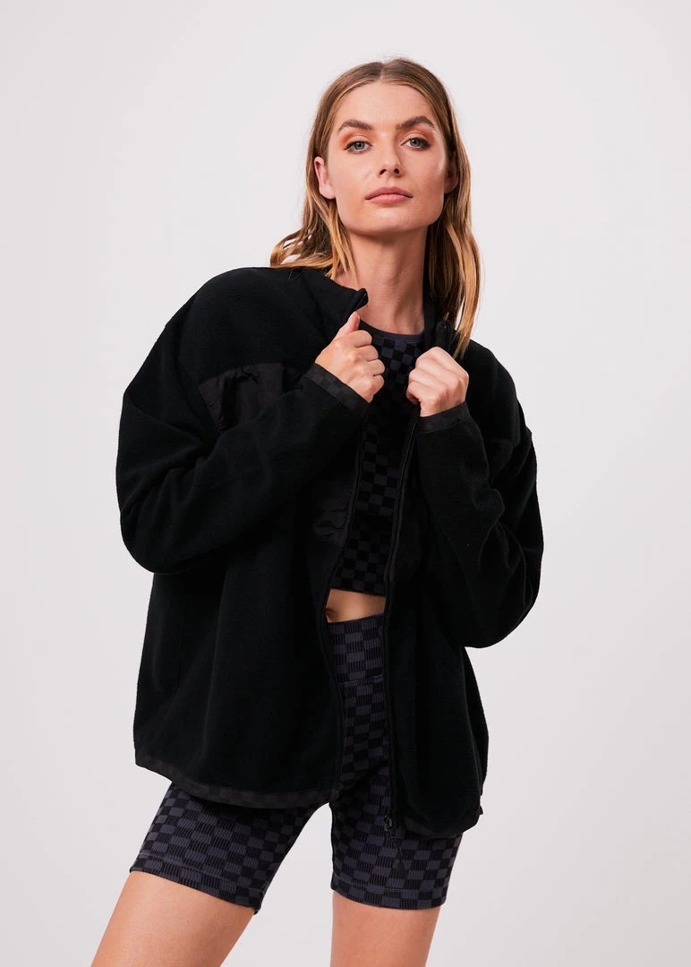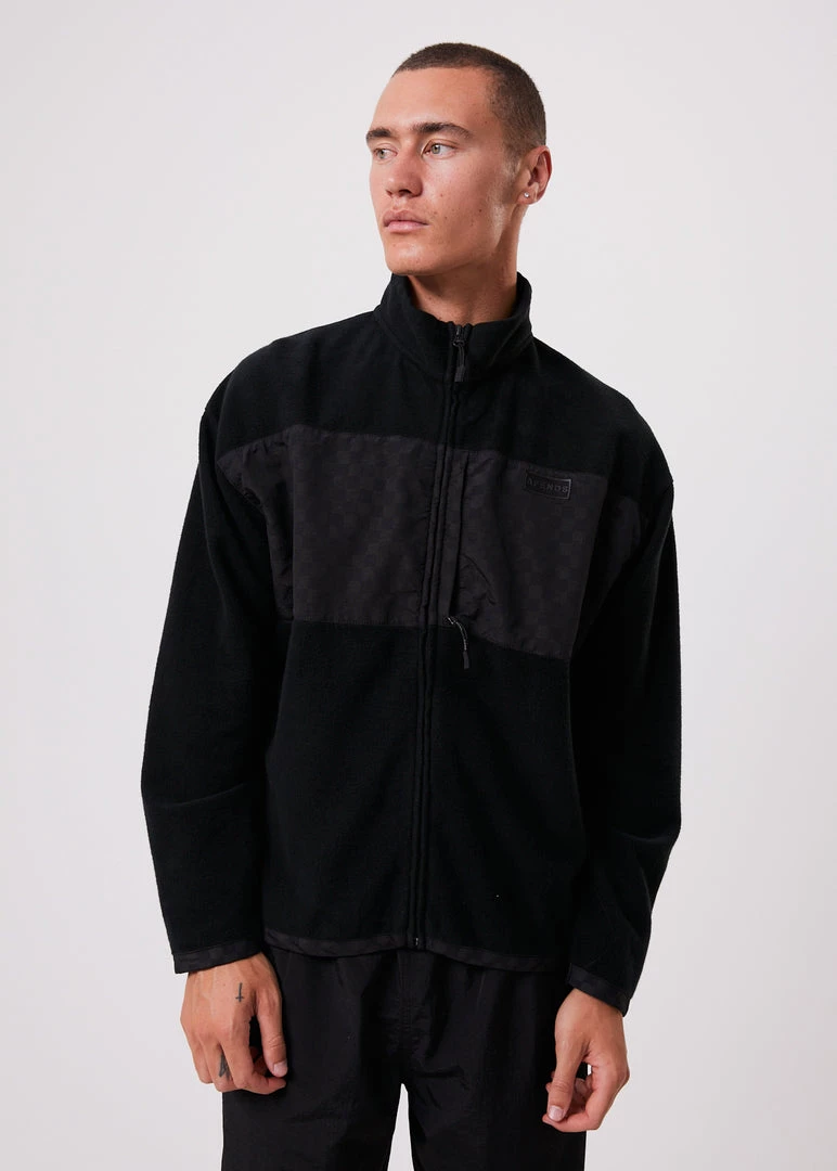 Beam up in this zip up jumper. Innovatively crafted from eco-friendly recycled cotton brushed fleece, this is the perfect transeasonal midweight jumper. Our reverse fleece zip through design offers a relaxed fit, contrast pop colour toggle, and panelling with a subtle check print to pair back with our recycled ribbed range.
