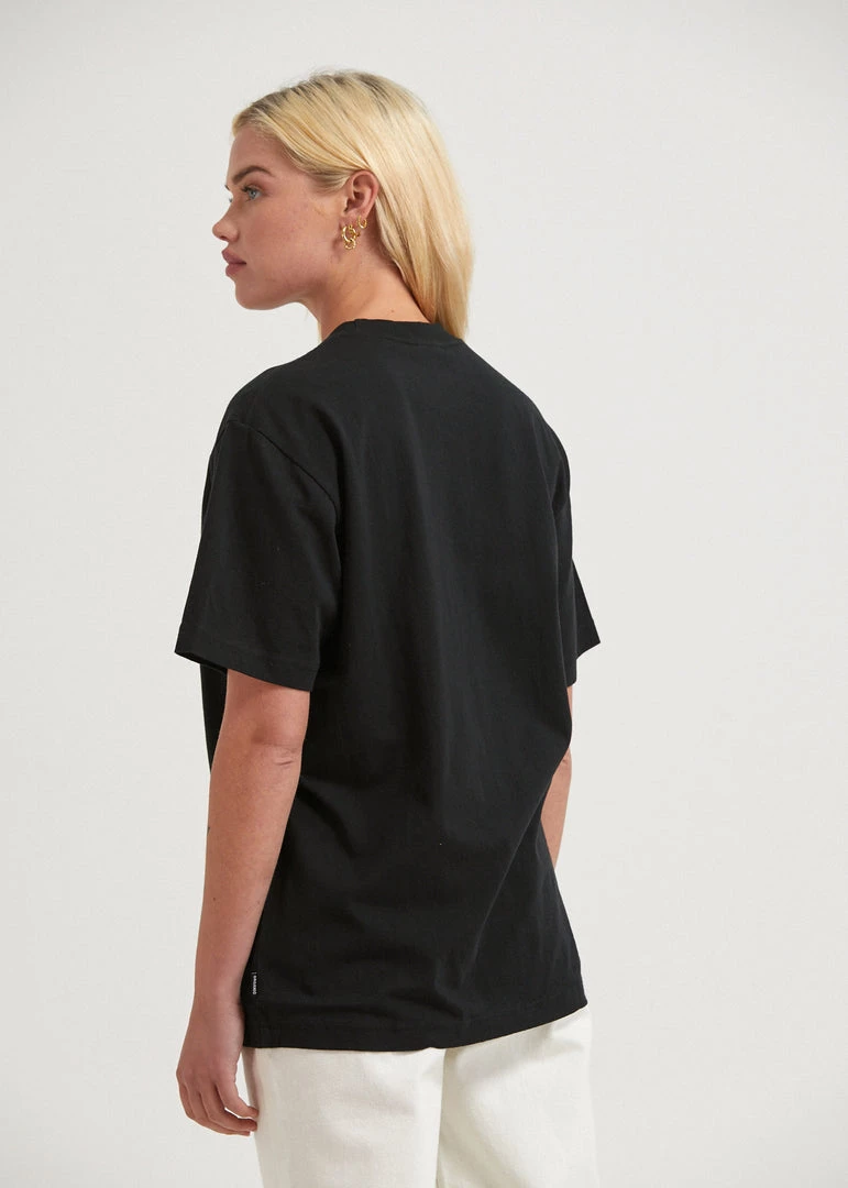 Enjoy the solitude in this retro t-shirt. Our eco-friendly organic cotton jersey offers a lightweight and luxurious hand feel. Cut in a relaxed boxy fit with short sleeves and finished with a contrast printed silver foil logo, this tee is a wardrobe essential.
