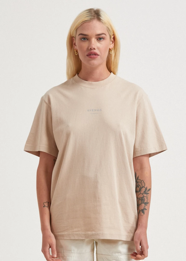 Enjoy the solitude in this retro t-shirt. Our eco-friendly organic cotton jersey offers a lightweight and luxurious hand feel. Cut in a relaxed boxy fit with short sleeves and finished with a contrast printed silver foil logo, this tee is a wardrobe essential.