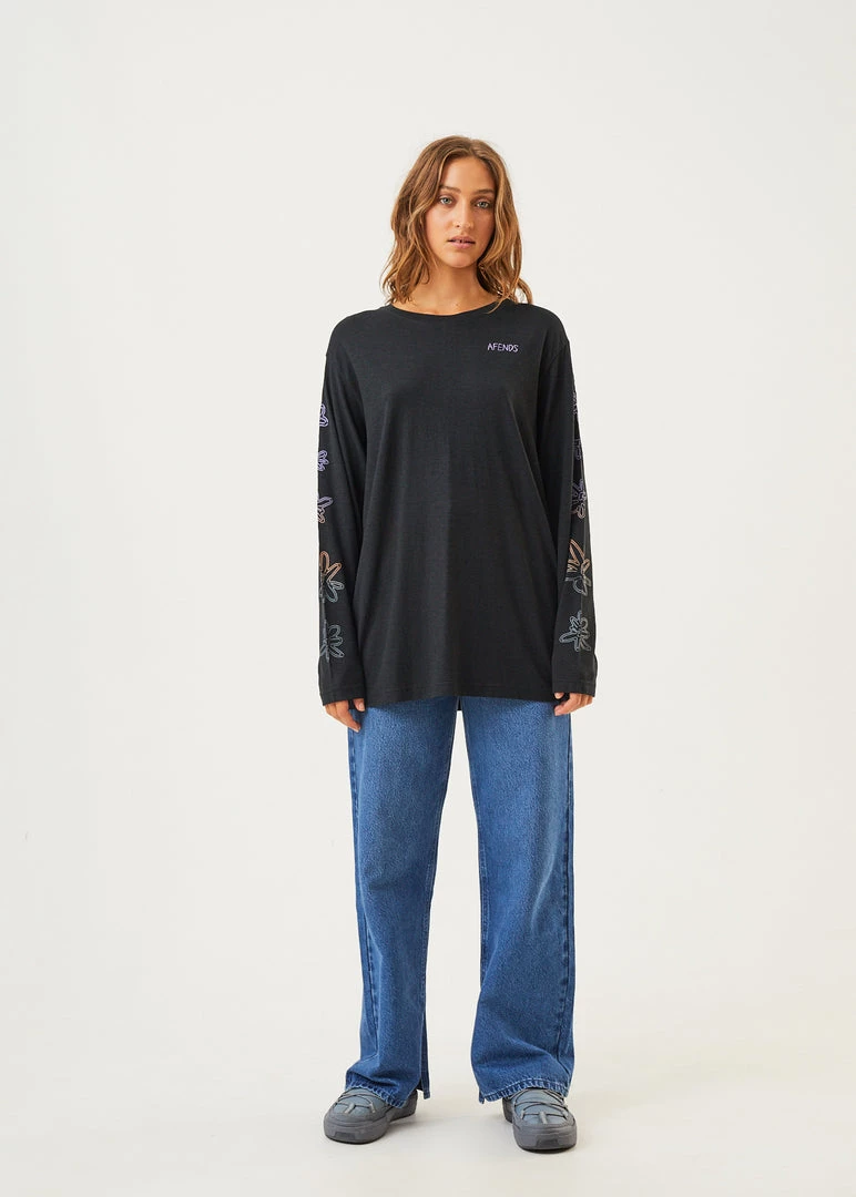 Layer up in this long sleeve graphic t-shirt. Created in collaboration with Ava Steiner, this is a playful take on a classic floral print. Our signature long sleeve silhouette offers a relaxed fit and soft-hand feel crafted from eco-friendly hemp and organic cotton jersey in a duo of timeless colours.