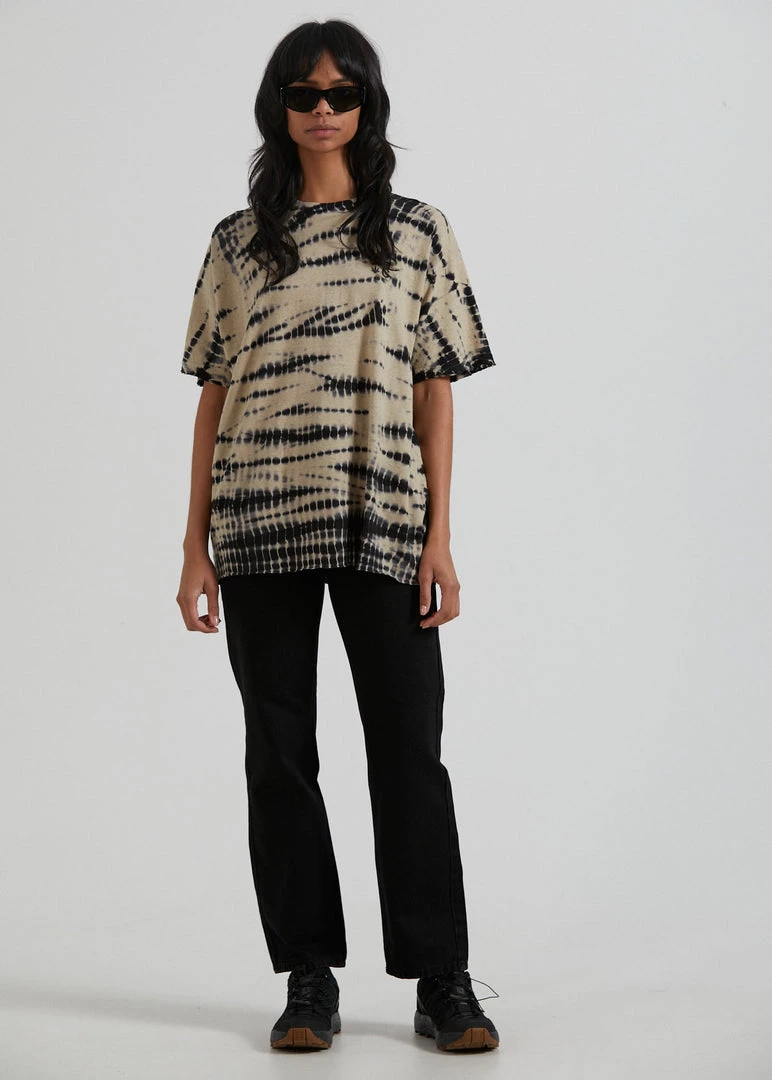 Not just an oversized tee. We have used a new was a technique to produce this unique contrast clay and black pattern and offer an update on your everyday essentials. In eco-friendly hemp and organic cotton, this oversized tee is soft, slouchy and looks good with a pop of colour.