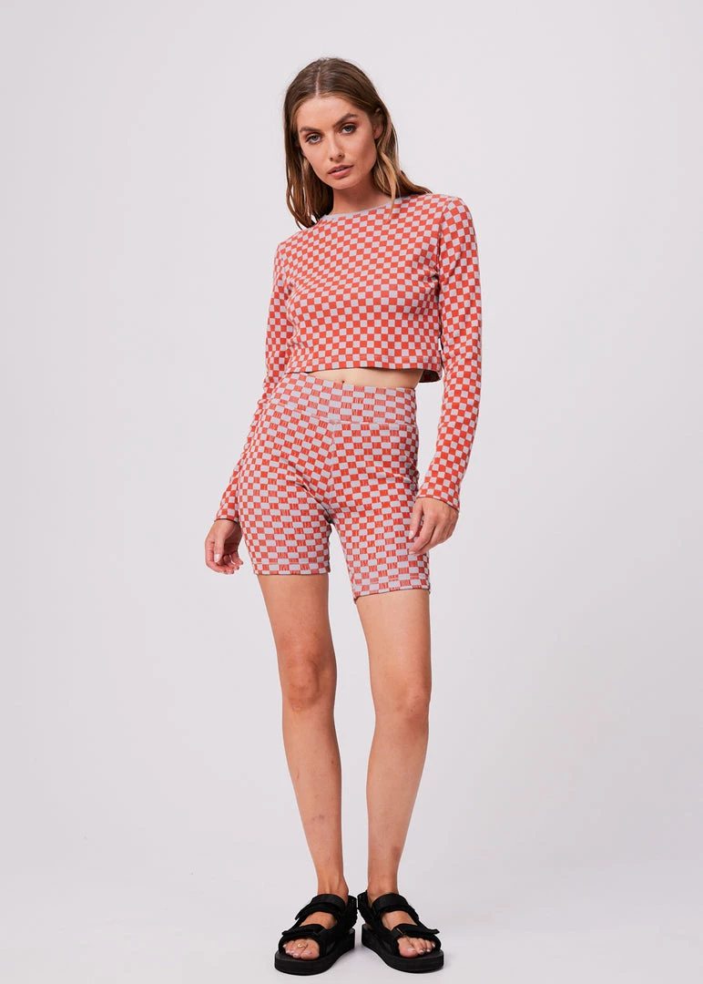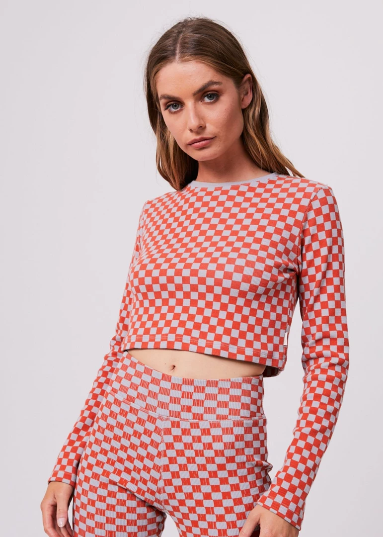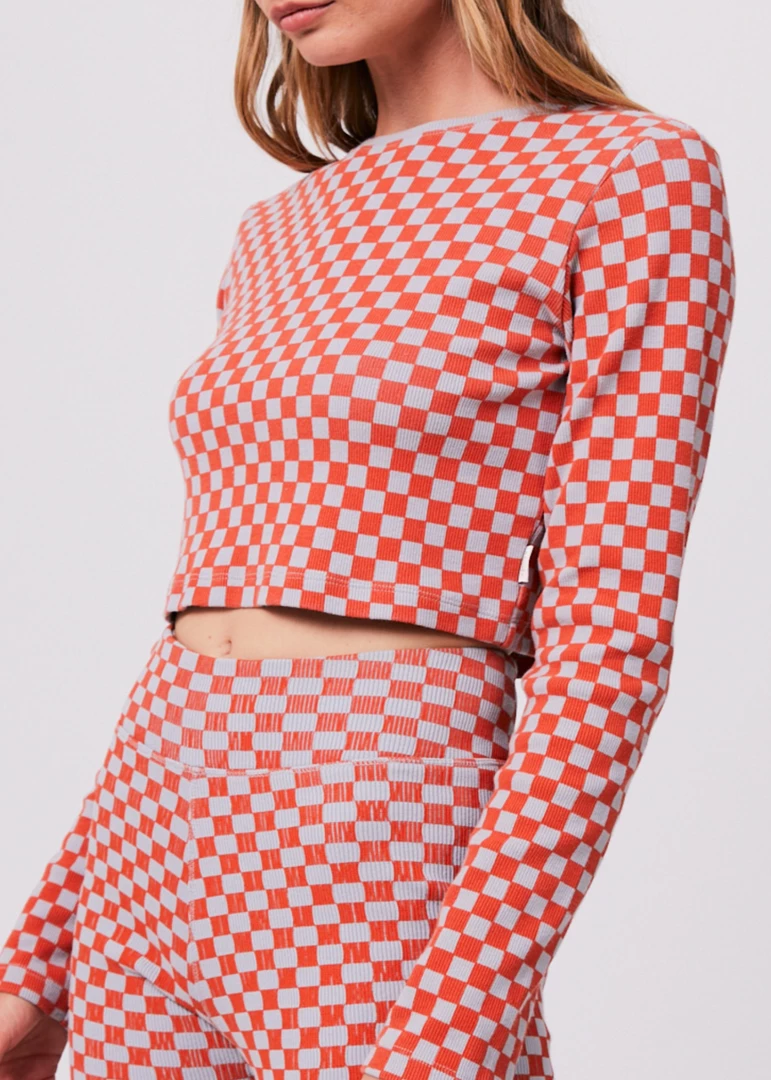 Clothing Afends Womens Operator – Recycled Cropped Long Sleeve Top – Coral