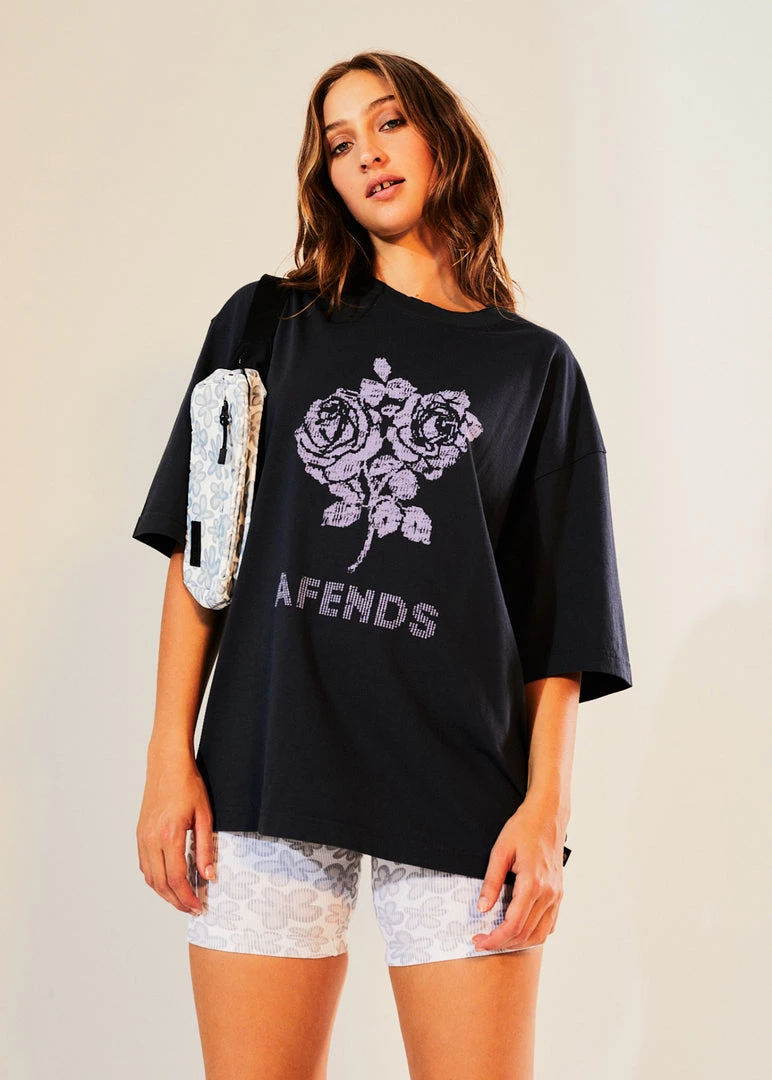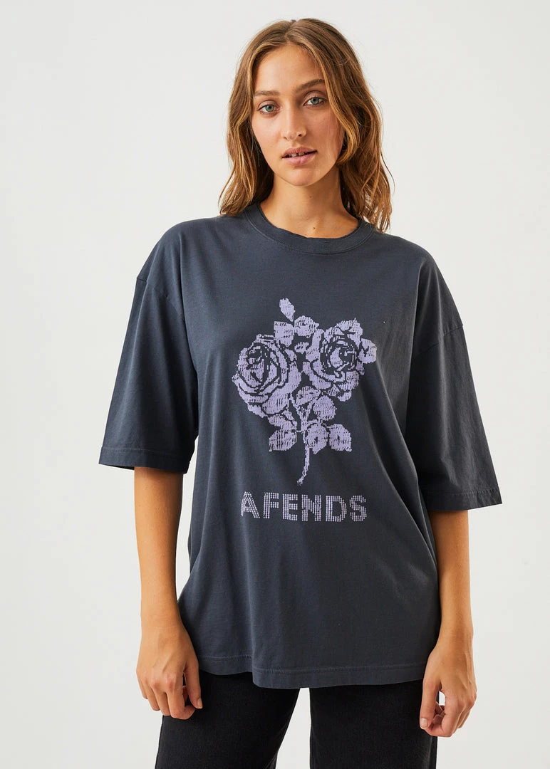 This oversized graphic t-shirt will solve all your problems. Kindly crafted from eco-friendly recycled cotton, this tee has a soft hand feel and natural drape that you will find yourself reaching for time and time again. Our classic oversized silhouette offers a slouchy fit with slightly longer sleeves and a rose printed artwork by Nirvana Selwood.