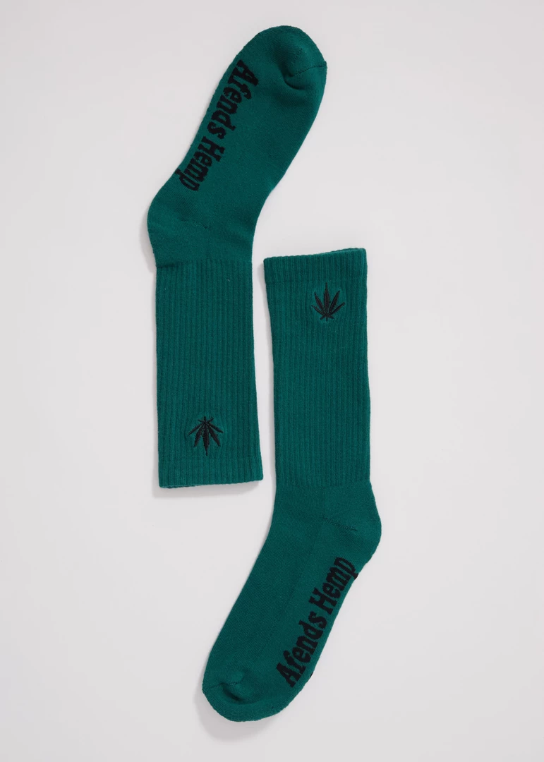 Happy Hemp Socks, happy life. A daily sock designed for everyday wear in our eco-blend of hemp and organic cotton with a slight stretch, breathability and anti-bacterial properties. In a range of fresh colours, these crew socks have been an Afends staple since day one.