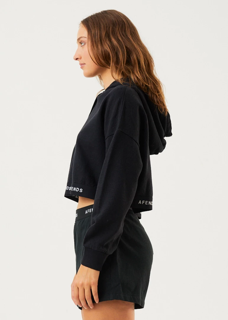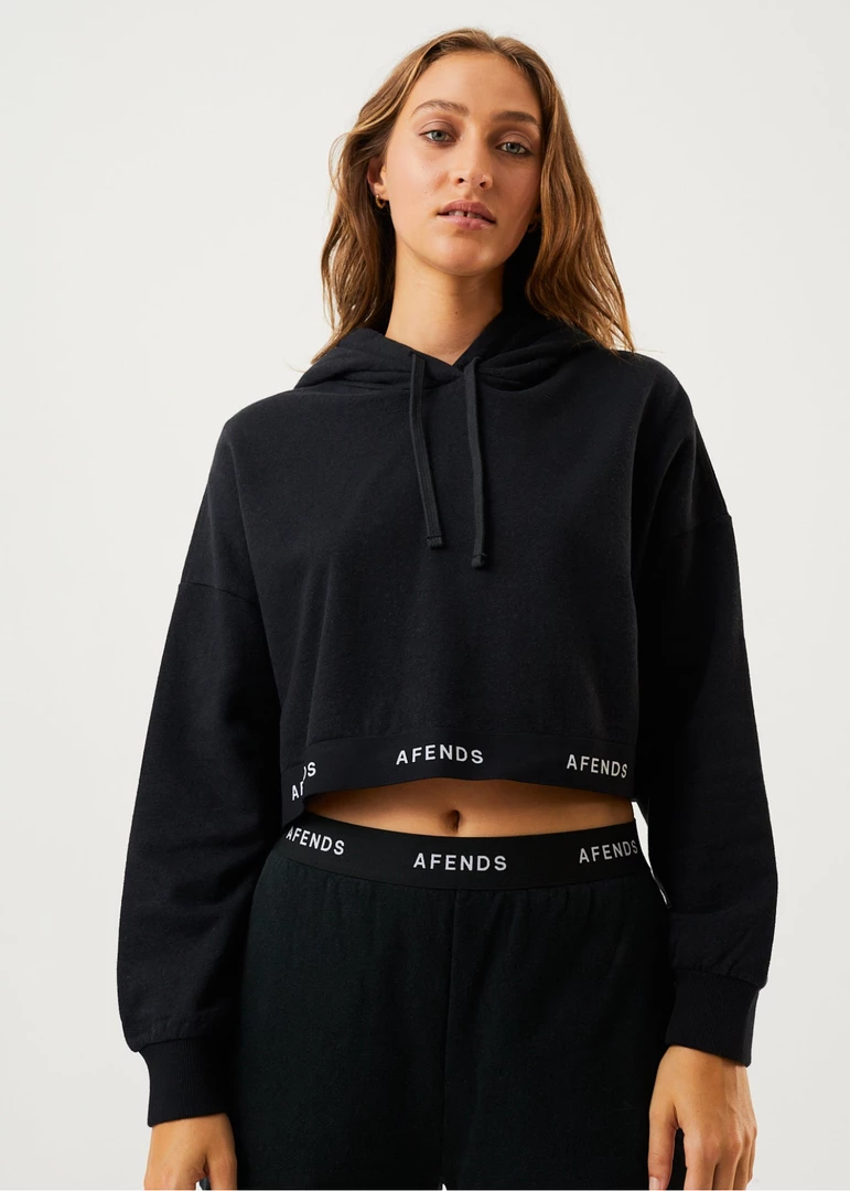 Sink into the homebase cropped hoodie. Crafted from eco-friendly organic cotton and hemp brushed fleece, this jumper offers a soft and cosy shell. Our new silhouette offers a relaxed fit, cropped design, pull on hood and Afends branded waistband. Pair it with the matching Homebase shorts for the ultimate lounging duo.