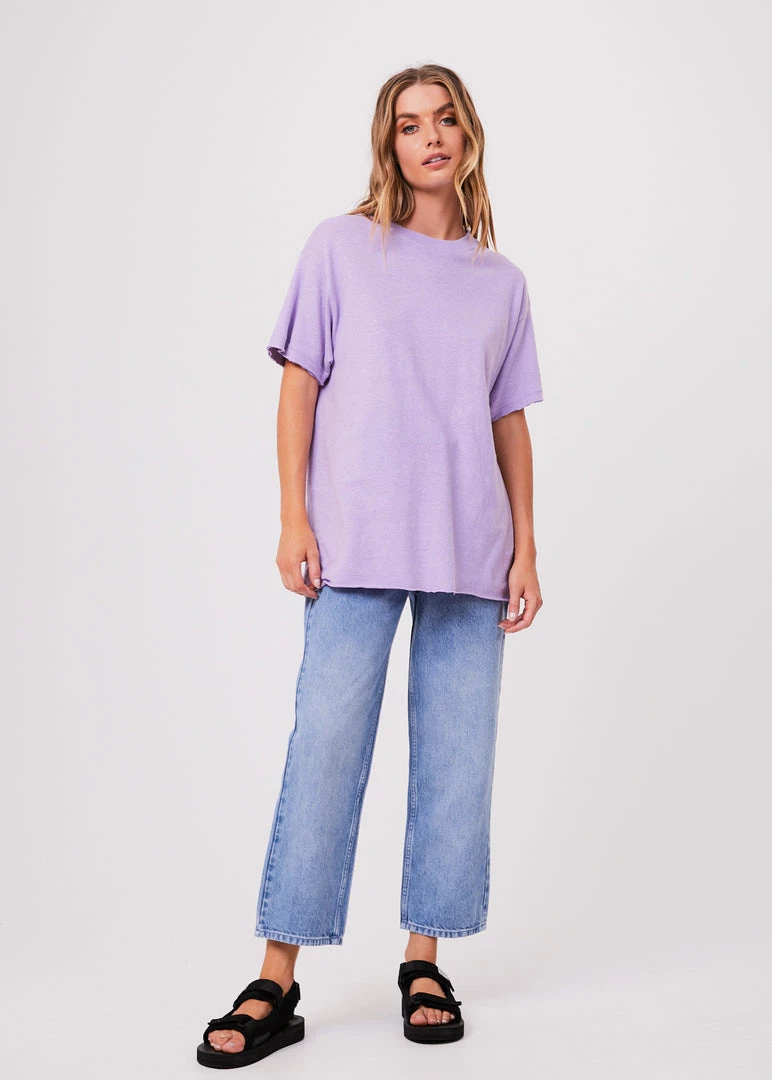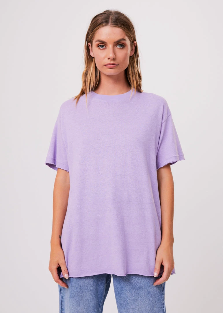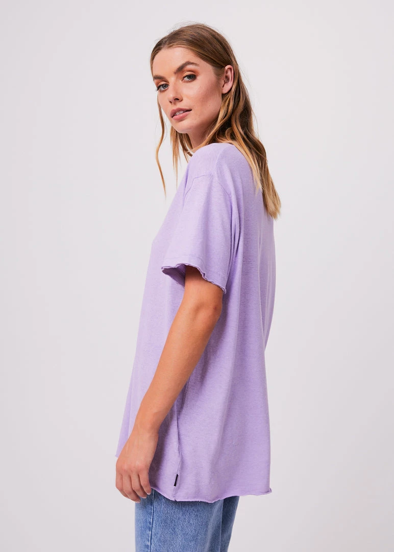 Slay in this oversized t-shirt. Our beloved and buttery soft hemp and organic cotton jersey construction has been overdyed with a heavy stone wash for a textured hand-feel. Designed in our signature oversized fit, this short-sleeve t-shirt has the perfect drape with double raw edges to grunge it up.