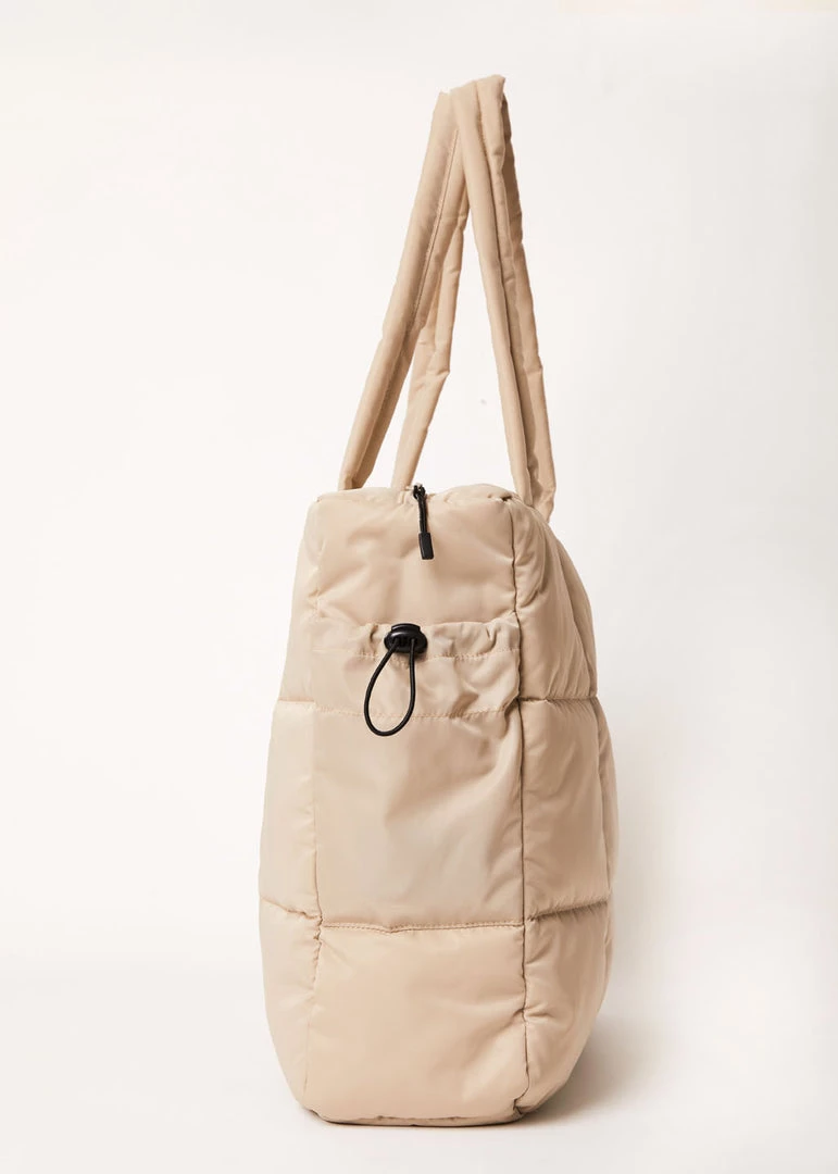 This puffer bag is the perfect weekender. Our new bag offers an oversized design to pack your goods and head out of town. Crafted from eco-friendly and highly durable recycled nylon taslon with a quilted puffer design, you’ll have this on hand for years.
