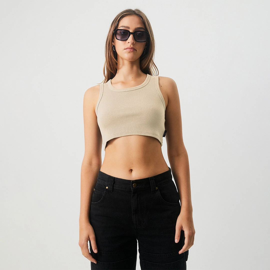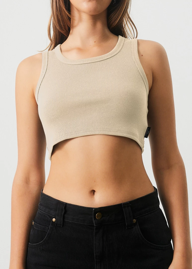 A cute and cropped ribbed tank. Crafted from our luxurious hemp rib fabrication, this tank offers a super cropped design, fitted silhouette and scooped neckline in an easy-wearing neutral shade.