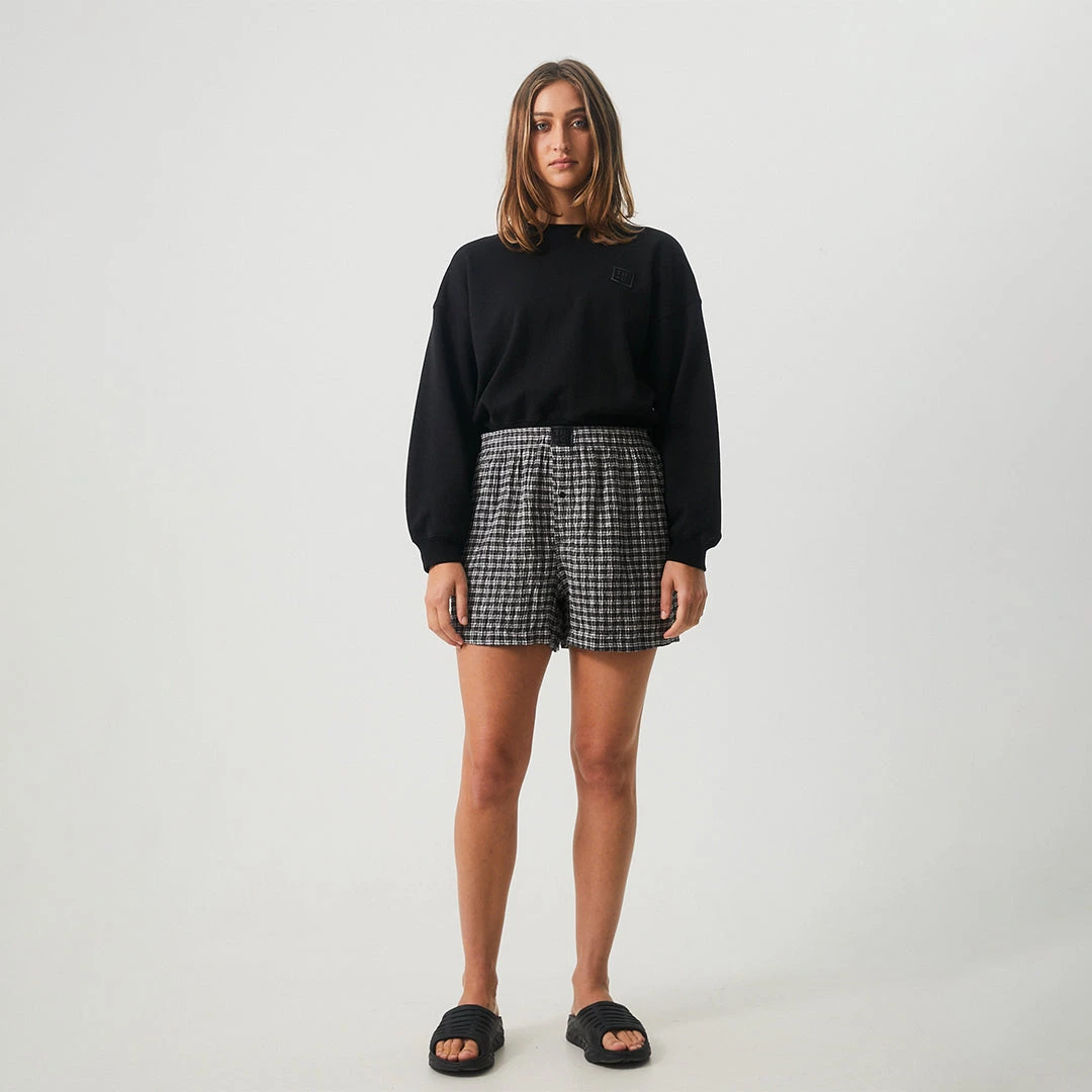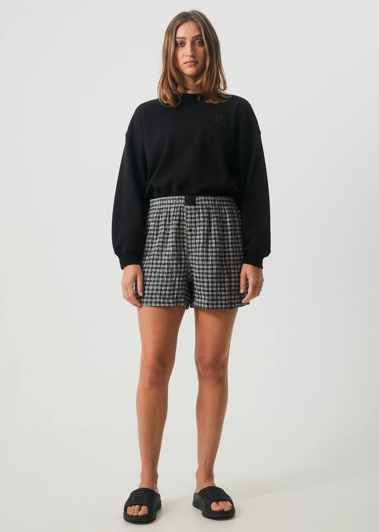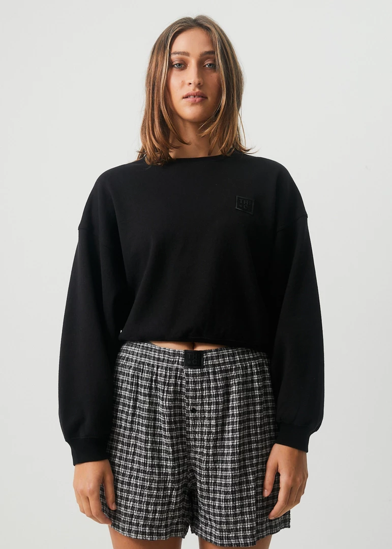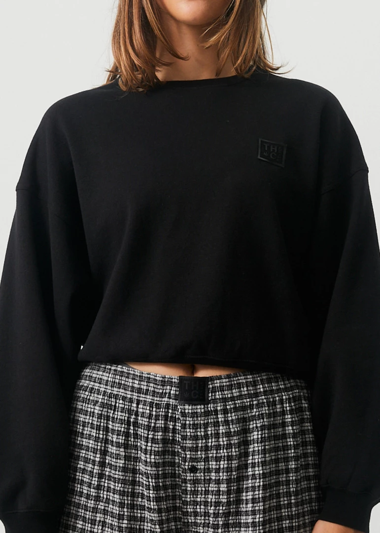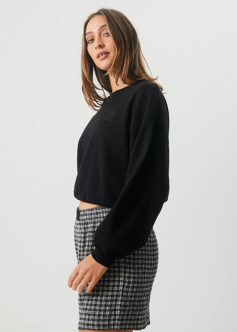 The perfect crew neck jumper for in between seasons. Cropped to sit in line with your waist, this crew neck jumper offers a relaxed fit and cosy design in eco-friendly hemp brushed fleece.