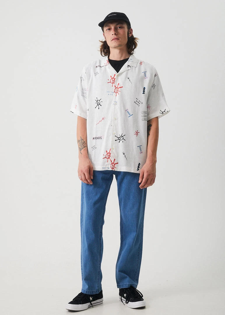 In a lightweight and breathable hemp and tencel blend, this sustainable shirt follows our signature Daily shirt shape featuring a cuban style collar button-through front and straight hemline. Featuring Beni’s playful sketches printed on the shirt, button it up or layer it over a classic hemp tee.