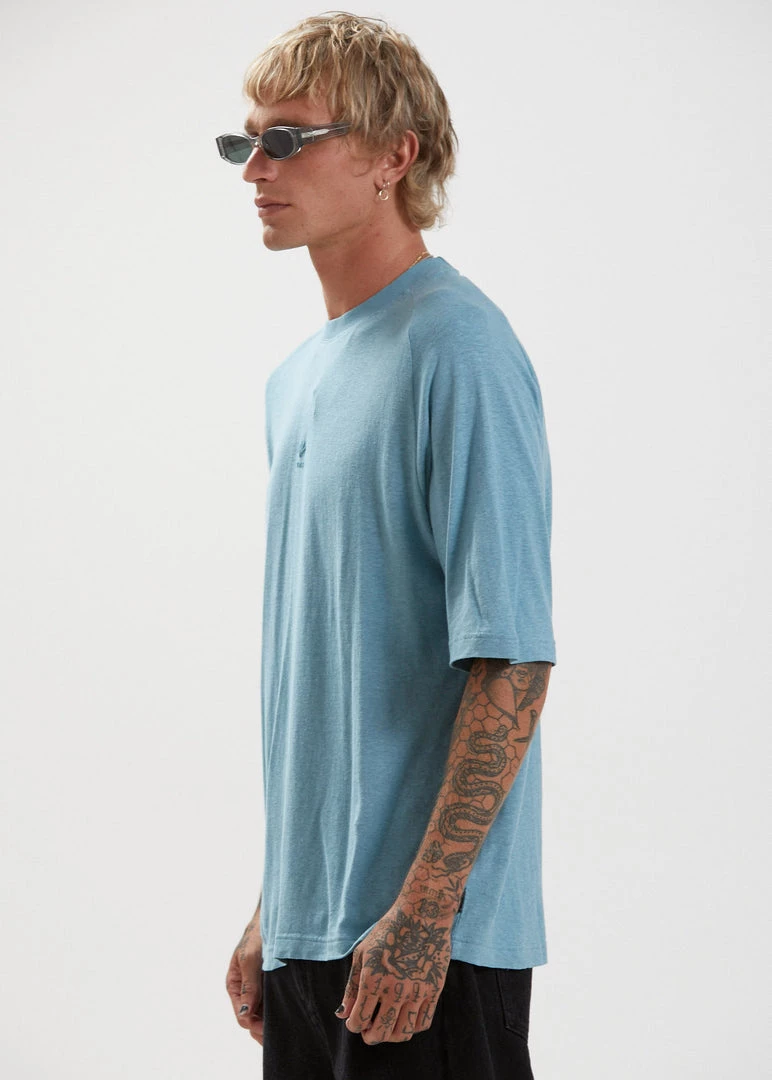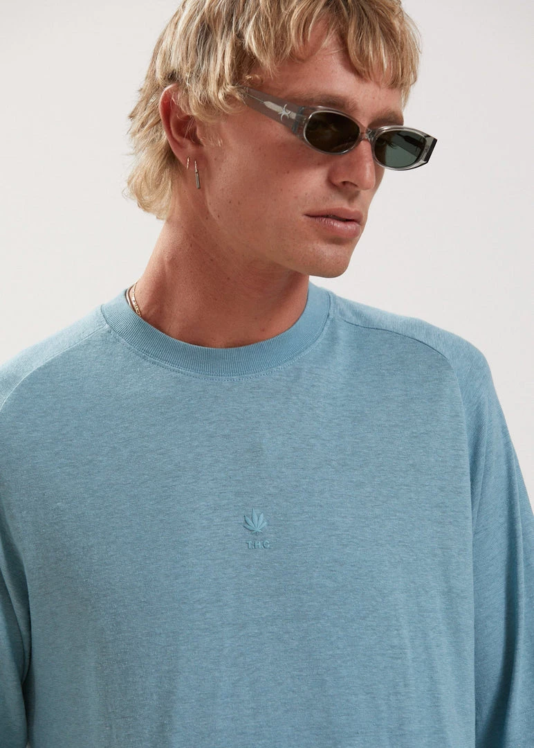 This raglan oversized t-shirt is reporting for duty. This tee is reminiscent of a vintage baseball tee with a relaxed and slouchy fit and longer raglan style sleeves. In our lightweight and eco-friendly hemp and organic cotton jersey with T.H.C puff embroidery, you’ll want to grab one of each.