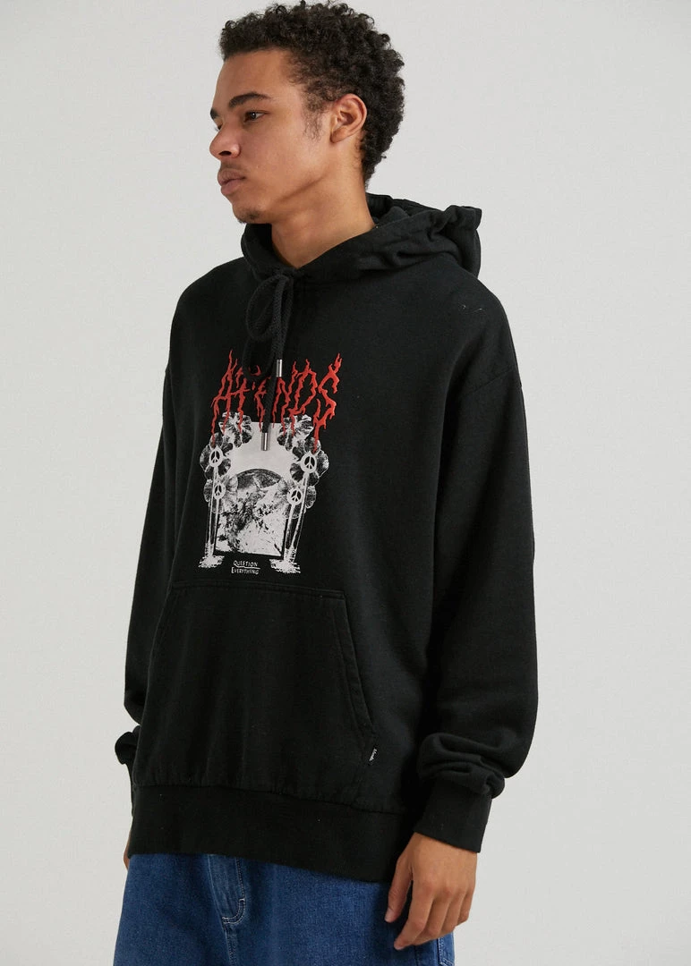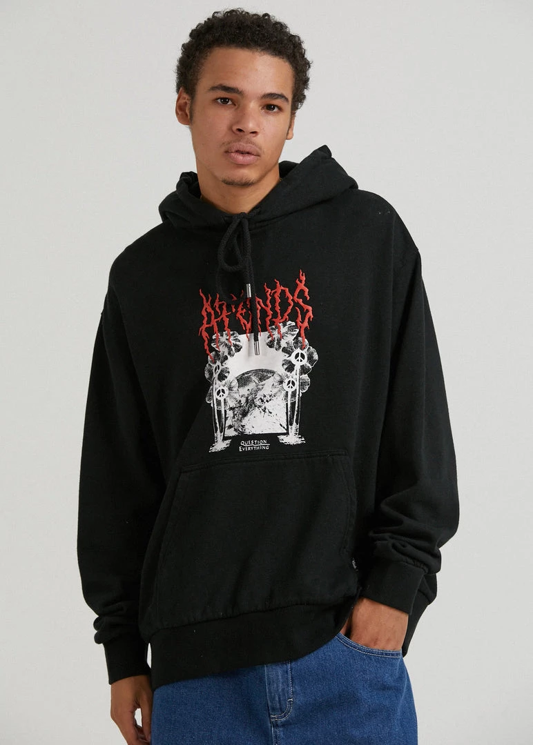 This hoodie throws it back to our punk roots. In collaboration with the illusive Johnny Citizen, this art capsule is a shout for optimism in a world currently deep in chaos. Our signature hoodie shape offers a soft and cosy shell in eco-friendly organic cotton and hemp brushed fleece to keep you snug all year round. Finished with heavy metal graphics and puff print – this is the hoodie you need.