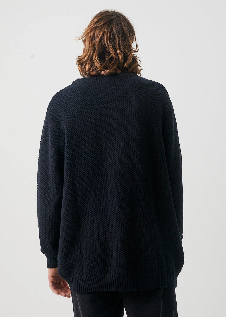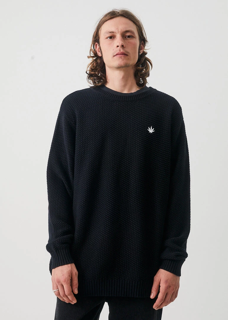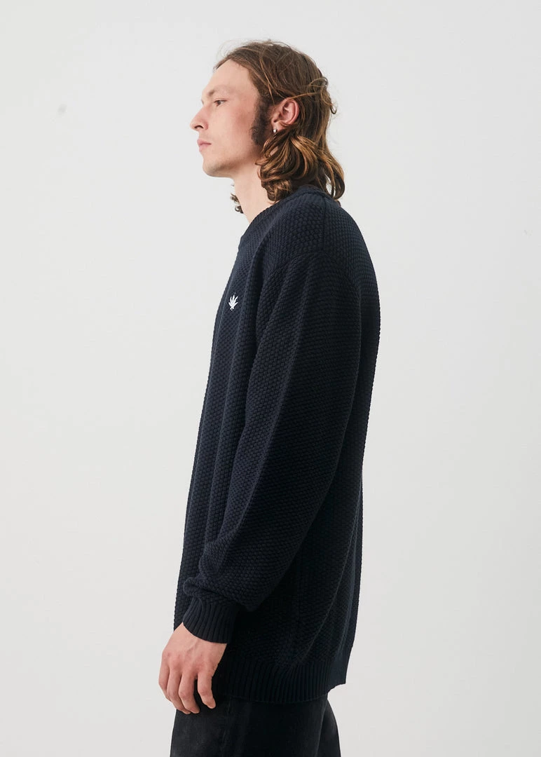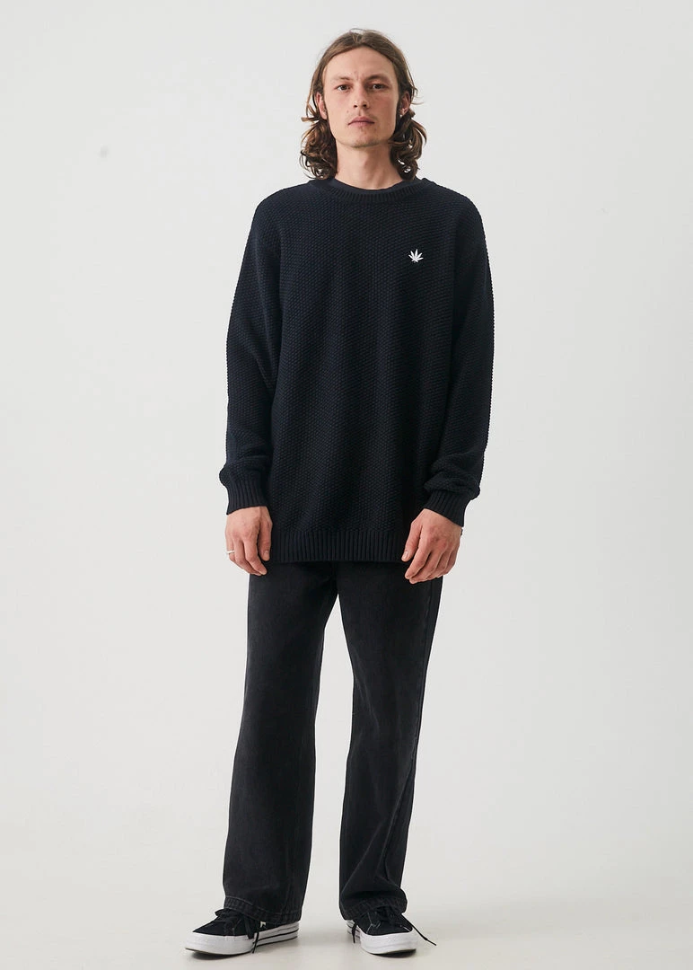 The ultimate Grandad knit. Crafted with comfort and sustainability in textured organic cotton and hemp knit. The THC knit crew offers a midweight and cosy design inspired by a vintage op shop sweater.