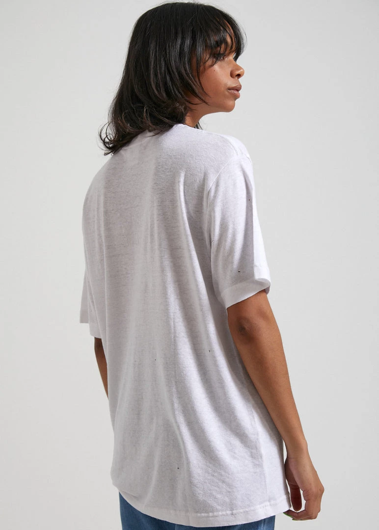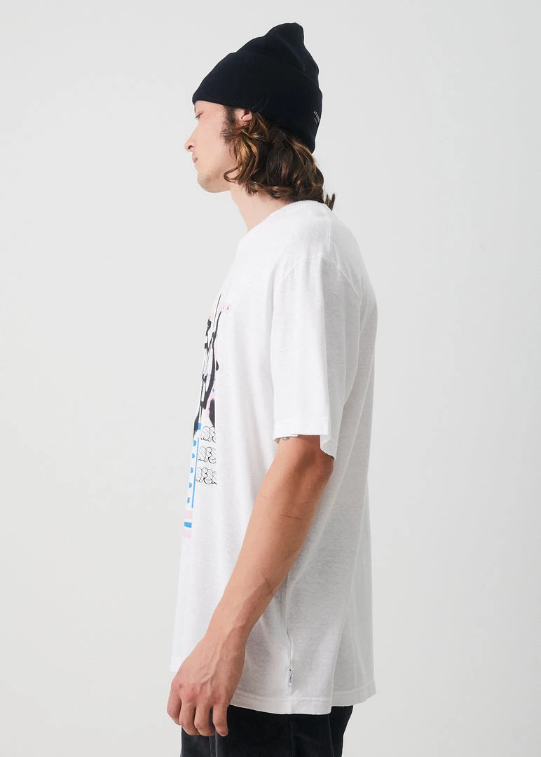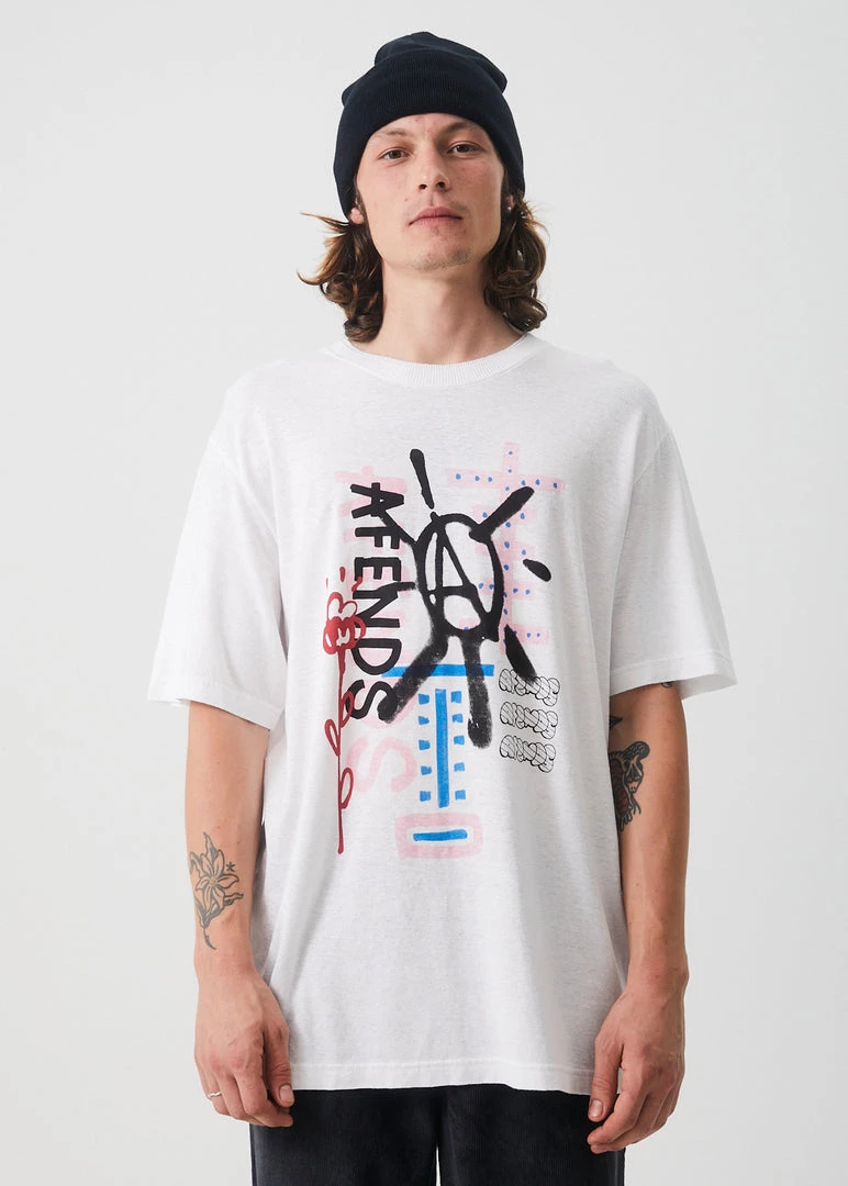 Promising comfort and ease, this short-sleeve t-shirt has a soft-hand feel in eco-friendly hemp and organic cotton jersey. This tee offers a midweight design, wide ribbed crew neck and relaxed shape. Finished with Beni’s custom spraypainted graphics, this tee will make a statement.