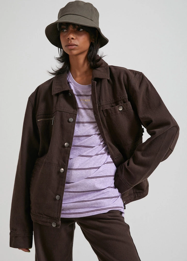 Crafted with functionality in mind – our denim jacket features a button-up front, four-pocket styling and utility-style trims. Offering a relaxed and boxy silhouette in our retro coffee colourway – the Richmond jacket gives a subtle nod to the 80s.