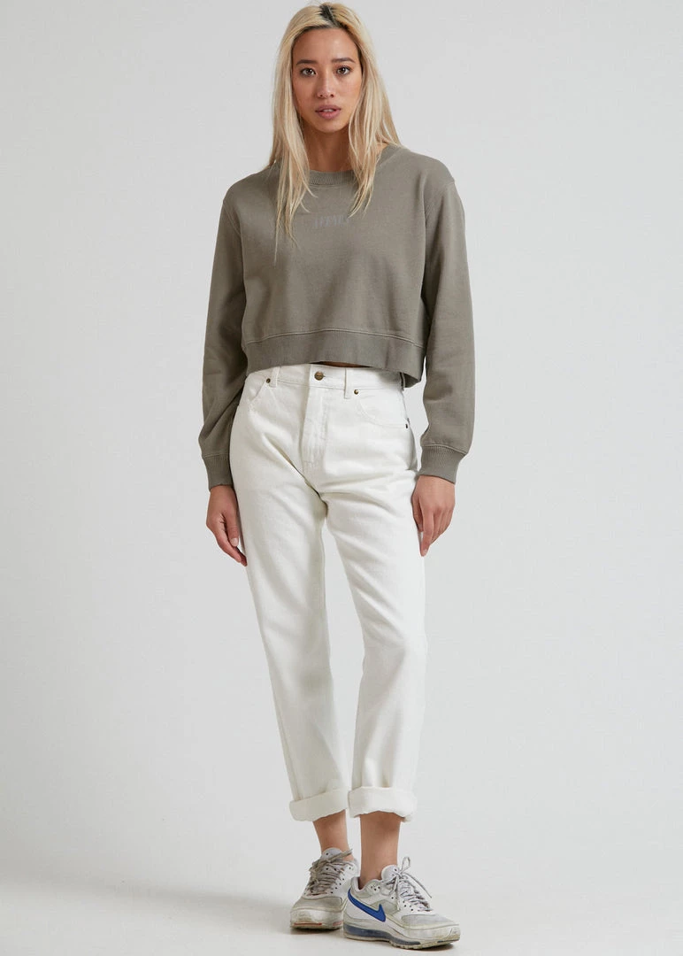 Offering a relaxed boxy silhouette, this jumper has a wide ribbed crew neck and cropped design. Finished with the iconic Afends logo inspired by our cult staple tee and an ode to a long-time love of ours, grunge queen Courtney Love.
