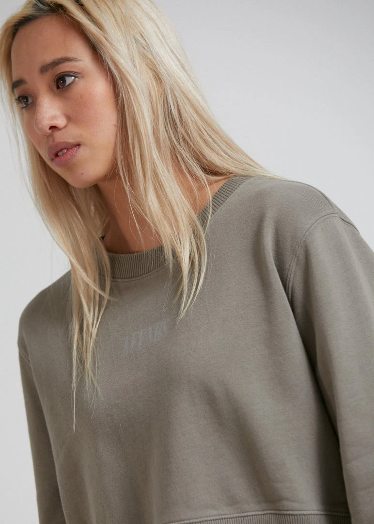 Rise above us. Sustainably crafted from RCS Certified recycled organic cotton brushed fleece, this crew neck is cosy and conscious to the planet.